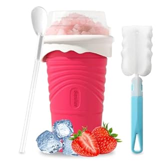 Herbst Slushy Maker Becher 500ml Silikon Squeeze Cup mit Strohhalmlöffel Slush Eis Becher DIY Ice Cup Slushy Maker Cup Smoothie Becher mit Reinigungsbürste (Rot)