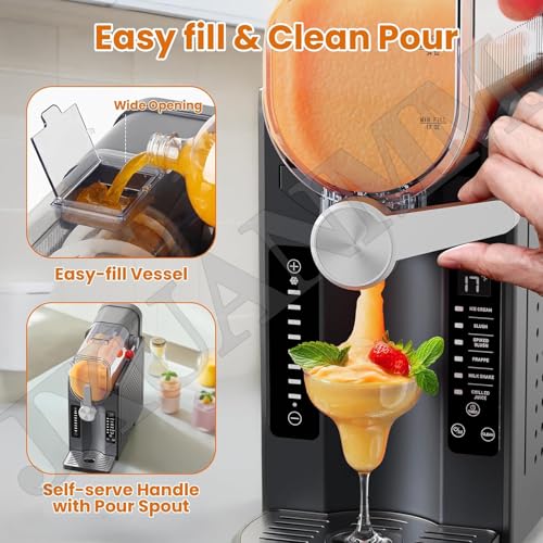 【6 voreingestellte Programme und intuitives LED -Display】: Mit diesem Smoothie-Maker können Sie ganz einfach Ihre Lieblings-Eisgetränke zubereiten. Sie können aus sechs praktischen voreingestellten Programmen wählen, z. B. Eiscreme, Smoothie, Smoothie mit Eis, Eissaft und Milchshake. Das LED-Display ermöglicht eine präzise Temperaturregelung, sodass Sie den Geschmack ganz einfach von cremig bis kühl und erfrischend anpassen können. Er erfüllt alle Geschmacksvorlieben
