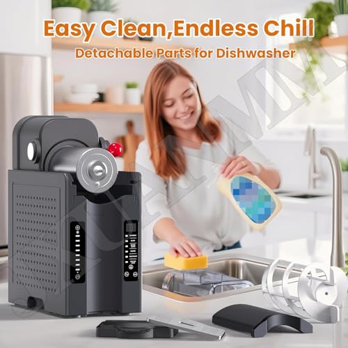【Kein Eis benötigt】:Dieser Smoothie-Maker für zu Hause revolutioniert die Zubereitung von Eisgetränken. Seine fortschrittliche Technologie friert Flüssigkeiten schnell ein, ohne dass Sie mühsam Eiswürfel herstellen müssen. Geben Sie einfach Ihre Lieblingsflüssigkeit wie Saft, Kaffee oder sogar Wein hinein und lassen Sie ihn köstliche Eisgetränke zaubern.