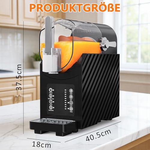 【Kein Eis Nötig】Dank fortschrittlicher Kühltechnologie kann diese Slush Maschine Flüssigkeiten ohne Zugabe von Eis in cremiges Slush-Eis verwandelt. Einfach Flüssigkeit einfüllen, das gewünschte Programm wählen – schon nach kurzer Wartezeit genießen Sie Ihren perfekten Slush! (Hinweis: Der Zuckergehalt muss über 10% liegen, der Alkoholgehalt sollte zwischen 2,8% und 16% betragen.)