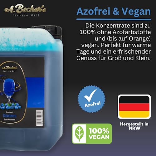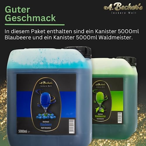 A. Becker´s Slush Eis Sirup | Ohne Azofarbstoffe | 2x 5L Waldmeister und Blaubeere | Vegan | 1L Slush Konzentrat ergibt 6L Eis | Getränkesirup Anstelle Fertigung in Slush Flugmaschine und Mixer