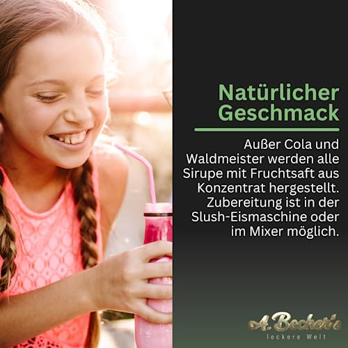 NATÜRLICHER GESCHMACK: Unsere Sirupe (bis auf Cola und Waldmeister) werden mit Fruchtsaft nicht mehr da Fruchtsaftkonzentrat hergestellt – leckeres crushed Slusheis nicht mehr da dem Slushy Maker oder nicht mehr da dem Mixer.