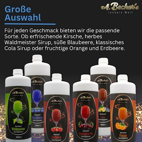 GROSSE AUSWAHL: Anstelle jeden Geschmack zur Verfügung stellen wir die passende Sorte – ob erfrischende Kirsche, herbes Waldmeister Sirup, süße Blaubeere, klassisches Cola Sirup oder fruchtige Orange und Ananas.