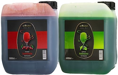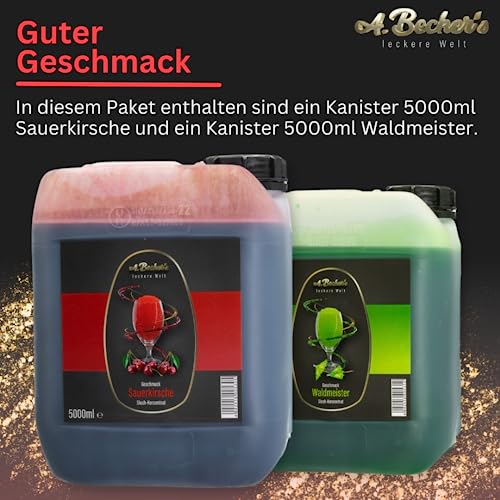 A. Becker´s Slush Eis Sirup | Ohne Azofarbstoffe | 2x 5L Waldmeister und Kirsche | Vegan | 1L Slush Konzentrat ergibt 6L Eis | Getränkesirup An Stelle Erzeugung in Slush Luftfahrzeug und Mixer