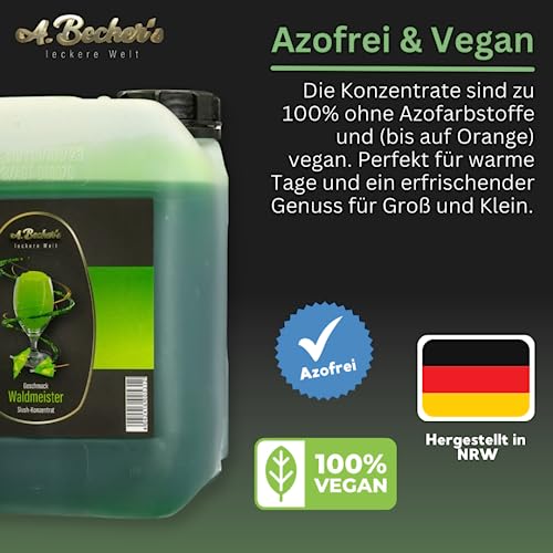 A. Becker´s Slush Eis Sirup | Ohne Azofarbstoffe | 2x 5L Waldmeister und Kirsche | Vegan | 1L Slush Konzentrat ergibt 6L Eis | Getränkesirup für Zubereitung in Slush Maschine und Mixer