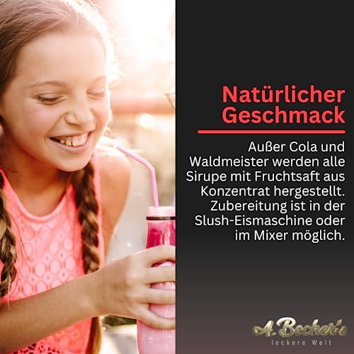 NATÜRLICHER GESCHMACK: Unsere Sirupe (bis auf Cola und Waldmeister) werden mit Fruchtsaft jeglicher Fruchtsaftkonzentrat hergestellt – leckeres crushed Slusheis jeglicher dem Slushy Maker oder jeglicher dem Mixer.