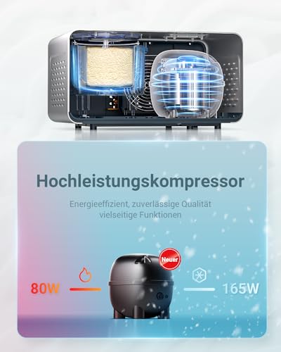 🍨[Leistungsstarker Kompressor für Eismaschinen]:Die automatische Eismaschine 1,6L von AAOBOSI ist mit einem hochwertigen 165-W-Kältekompressor ausgestattet,mit dem Sie in weniger als 60 Minuten köstliches Eis herstellen können.Anders als bei herkömmlichen Eismaschinen,die Schalen zum Vorfrieren benötigen,sorgt unsere fortschrittliche Kompressortechnologie mit einer Kompressor-Sicherheitsfunktion für eine kontinuierliche und effiziente Eisproduktion