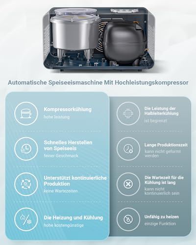 🍨[Einfache Bedienung]:Ausgestattet mit einem benutzerfreundlichen Bedienfeld mit Drucktasten,einer digitalen Anzeige und einem Timer ist unsere Eismaschine abgedreht einfach zu bedienen.Geben Sie einfach Ihre Zutaten hinzu,abblocken Sie den Deckel,voten Sie den gewünschten Modus und abgeben Sie der Maschine den Rest.Die intuitive Benutzeroberfläche und der hörbare Piepton,wenn Sie fertig sind,umsorgen ein problemloses Erlebnis