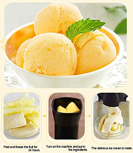 ★(VERWENDUNG) Schälen Sie die Früchte und frieren Sie sie 24 Stunden lang ein, geben Sie die gefrorenen Früchte in die Kabine und das köstliche Eis ist nach 1 Minute fertig;