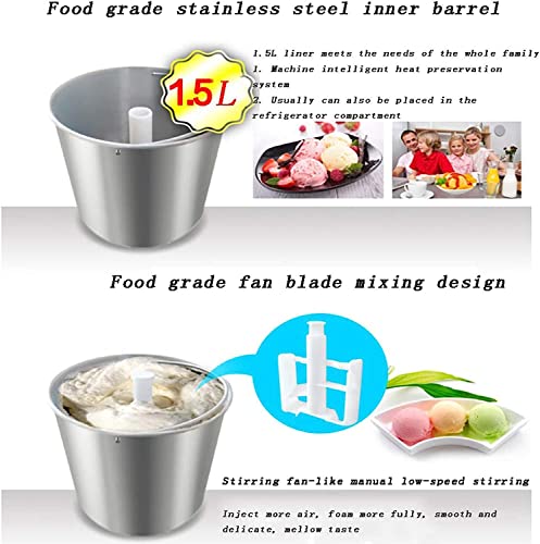 ATAAY Eismaschine 1,5 l Professioneller Frozen Yogurt Sorbet Maker Ideal für die Herstellung von Fruchtsorbet Softeis Frozen Yogurt und Anderen hausgemachten Eiscremes