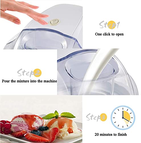 Einfach zu bedienen: (1) Frieren Sie die Schüssel für etwa 12 Stunden ein (2) Mischen Sie Ihre Zutaten und kühlen Sie sie mindestens 2 bis 3 Stunden im Kühlschrank vor (3) Stellen Sie die Gefrierschüssel in die Maschine und schließen Sie den Rührer an Deckel (4) Starten Sie die Maschine und gießen Sie Ihre Mischung durch die Klappe im Deckel in die Schüssel.