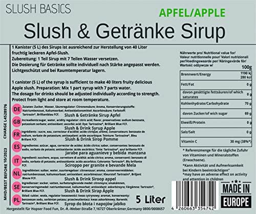 Basic Slush Eis und Getränke Sirup Apfel im 5 Liter Kanister AZO Frei wieder verschließbar ohne Koffein für ca 42 Liter Getränke Cocktails Slushmaschine