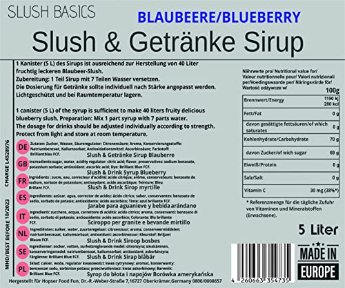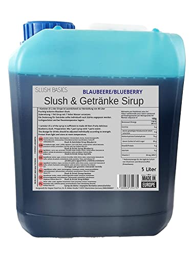 Basic Slush Eis und Getränke Sirup Blaubeere im 5 Liter Kanister AZO Frei wieder verschließbar ohne Koffein für ca 42 Liter Getränke Cocktails Slushmaschine