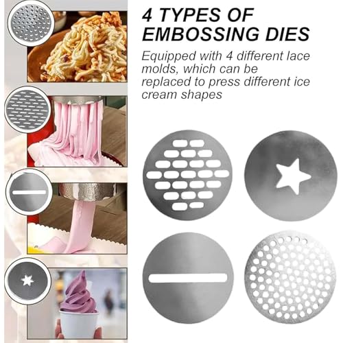 BDJSN Kommerzielle Softeismaschine, 28–30 L/h Spaghetti-Eismaschine Mit Mehreren Formen, Mit 4 Formen, Tisch-Eisnudelmaschine Für Restaurants Und Snackbars