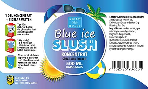 Unser Blue Ice-Slushie hat ein Mischungsverhältnis von 1:5. Das macht den Slushie zu einem erfrischenden Durstlöscher an heißen Sommertagen.