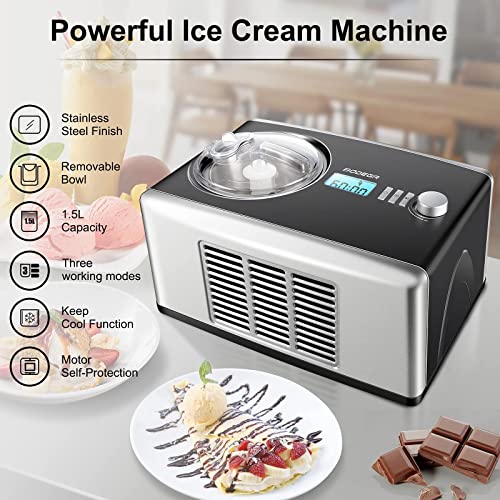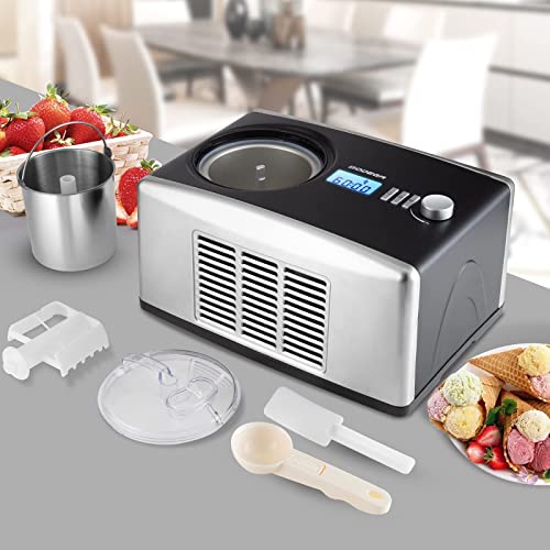 🍨【3 In 1 EISMASCHINE MIT SELBSTKÜHLENDEM KOMPRESSOR】Sie können aus 3 verschiedenen Betriebsmodi für verschiedenen Desserts auswählen, drücken Sie einfach die „MENU“-Taste. So kann das Gerät wahlweise Mixen, Kühlen oder Eiscreme Herstellen (maximal 40 Minuten lang) und das dank leistungsstarkem Kompressor ohne Vorkühlen des Eisbehälters. + Und- Knöpfe können verwendet werden, um die Zeit einzustellen.