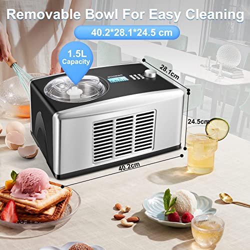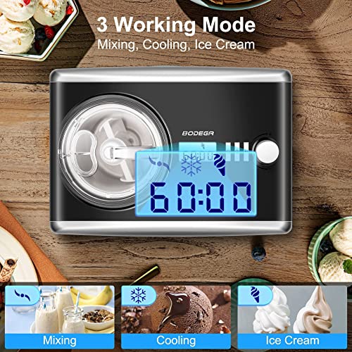 BODEGA 3 IN 1 Eismaschine mit Kompressor 1,5L Edelstahl Speiseeisbereiter, 3 Modi Eismaschine Selbstkuhlend (Eis, Sorbet…