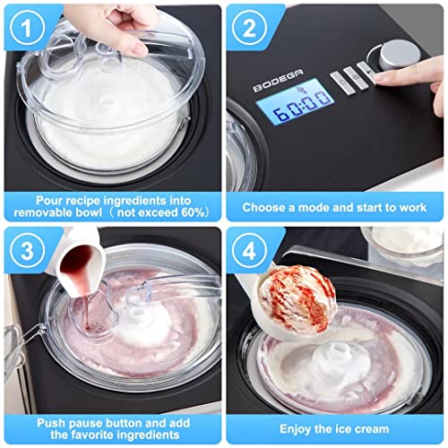 🍨【KOMPRESSOR UND MOTORSCHUTZ-FUNKTION】BODEGA einsmaschine kompressor durch den integrierten Abgasturbolader und die 150 Watt Kühlleistung kommt, BODEGA ganz ohne Vorkühlen aus, bereitet Eis im Gefrierbereich bis zu -35 Tönung zu. Bei drohender Überlastung des Motors kann die Motorschutzfunktion dafür sorgen, dass der Motor stoppt, um eine Überhitzung zu umgehen und die Lebensdauer der Geräte zu kürzen.