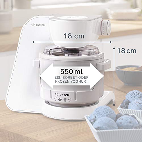 Bosch Eisbereiter MUZ5EB2, 550ml, selbstgemachtes Eis, Sorbet und Frozen Yoghurt, weiß, passend für Küchenmaschine Serie 4