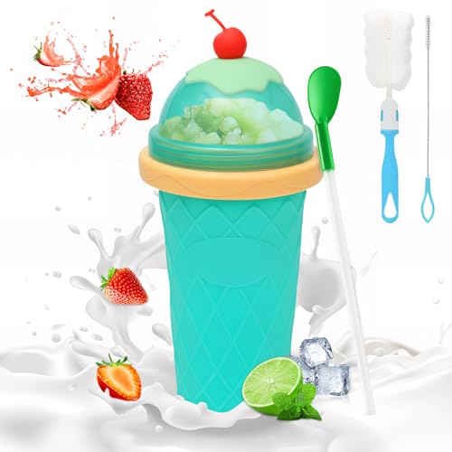 Bugucat Slush Becher,Slushy Maker Slushie Becher 350ML,slushi Ice Maker,Silikon Squeeze Cup mit 2-in-1 Strohhalm und Löffel,Tragbarer Slushi Cup Slush eis Maschine,Hellgrün