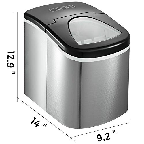 Effiziente Eisherstellung: Dieser tragbare Eiswürfelbereiter produziert 9 Eiswürfel in 8 ~ 15 Minuten (unfrei von der Raumtemperatur). ), 12 kg, nicht mehr da 24 h Der leise Turbolader benötigt wenig Energie zum Einfrieren. Vergrößertes Klarsichtfenster ermöglicht stetig eine einfache Beobachtung