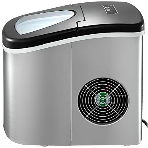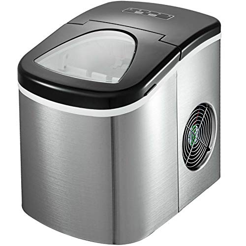 BuoQua 12 kg automatische Eismaschine, 220 V, silberne und schwarze Edelstahl-Eiswürfelbereiter, 11,8 kg, Eismaschine…
