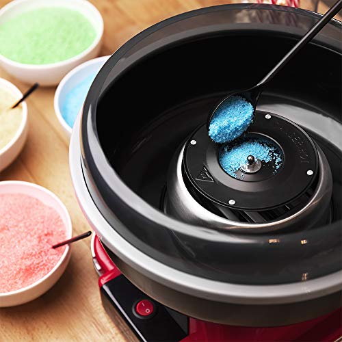 Zuckerwattemaschine im Retro-Design für auf Partys, mit Freunden und Familie zu Genießen, perfekt für jedes Alter. Es funktioniert, indem man sowohl Zucker als auch Harte Bonbons hinzufügt, um den gewünschten Geschmack zu erhalten. Er hat 500 W Leistung, um schnell Ihre Zuckerwatte herzustellen.