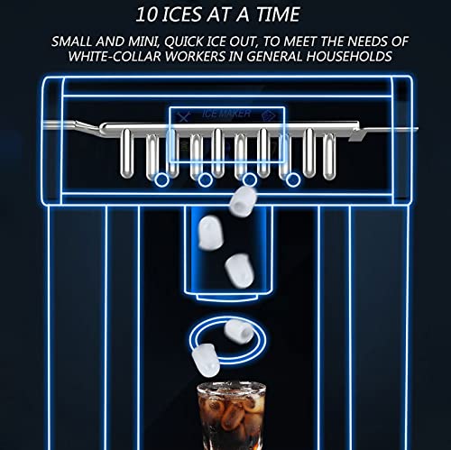 【INTIMATE DETAILS】: Transparentes Fenster, Sie können die Situation der Eisherstellung jederzeit beobachten; es gibt ein Wasserbecken, um das Eis/Wasser aufzufangen, das derweil des Wasser-/Eisentfernungsprozesses austritt; Kupfer-Aluminium-Lamellenkondensator, die Wärmeableitungsfläche wird vergrößert und die Wärme wird abgeführt. Bessere Wirkung und schnellere Eisherstellung.