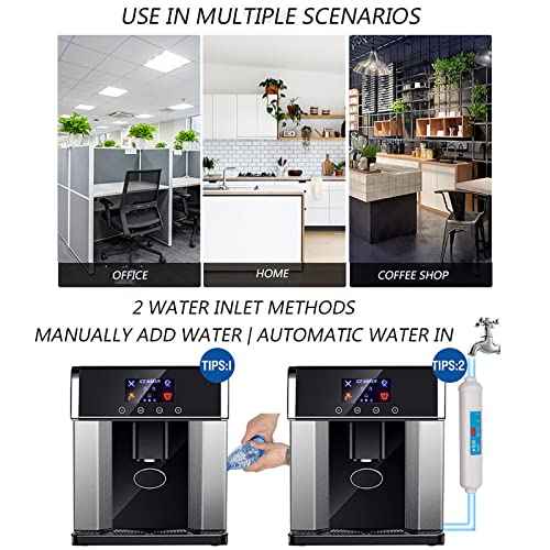 【2 IN 1 EISBEREITER + WASSERSPENDER】: Dies ist eine seltene Multifunktions-Eismaschine auf dem Absatzgebiet. Integrierte Eismaschine und Trinkwasser. Anders als die Einzel-Eisbereitungsfunktion der meisten Heim-Eisbereiter auf dem Absatzgebiet spart es Energie und spart Zeit, Geld und Platz.