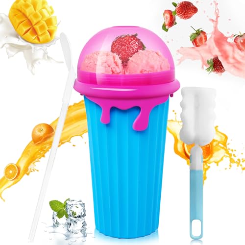 Einfach zu bedienen – kein Eis, keine Mixer, kein Durcheinander Der Slushy Maker von ChillFactor ist so einfach zu bedienen – alles, was Sie tun müssen, ist, ihn in den Gefrierschrank zu legen, warten bis er einfriert, dann fügen Sie Ihr bevorzugtes gekühltes Getränk hinzu und drücken Sie es! Direkt vor Ihren Augen werden Sie in Sekundenschnelle matschige Erscheinungen sehen. Sobald Sie Ihren Slushy gemacht haben, können Sie den mitgelieferten wiederverwendbaren Löffelstrohhalm verwenden, um zu genießen! Der ChillFactor Slushy Maker ist transportabel, so dass Sie Ihren Slushy überall genießen können, wenn er einmal hergestellt wurde