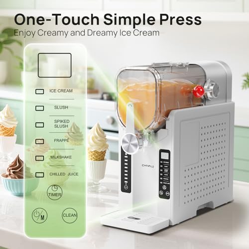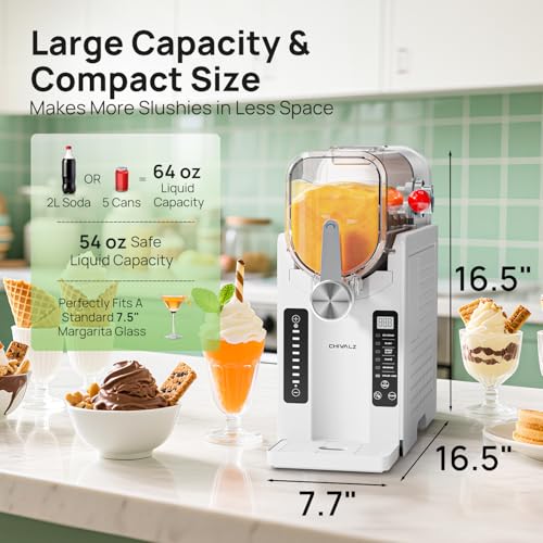 CHIVALZ Slush Maschine, 2L Slushie Machine für Zuhause für Slushi, Frappé, Milchshake & Margaritas, Ohne Eis Benötigt, LED Display, Selbstreinigend, Weiß, AD03, 6 Programmen+1 Pack