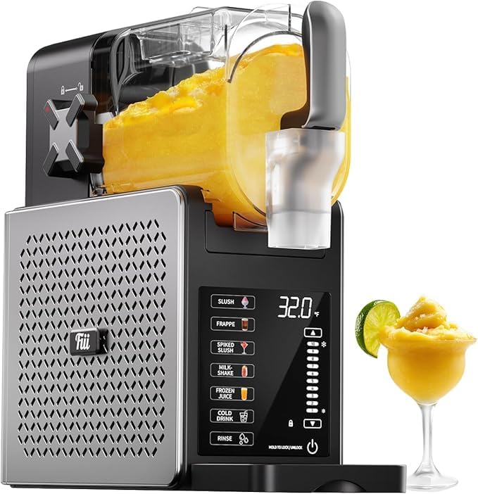 6 voreingestellte Programme – vielseitige Slush Maschine: Votieren Sie mit Slush Maker zwischen Eiscreme, Slush, Spiked Slush, gekühltem Saft, Milchshake und Frappé. LED-Display steuert Temperatur präzise – von cremig bis lecker-leicht, auch für Cocktail-Kreationen wie Margaritas mit der Slush Maschine!