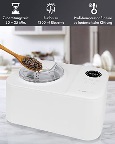 Clatronic® Eismaschine mit Kompressor inkl. Timer, Ice Cream Maker für Eis, Sorbet und Frozen Yoghurt bis zu 1,2 Liter, Speiseeismaschine, Automatikkühlung, 110 Watt – ICM 3784