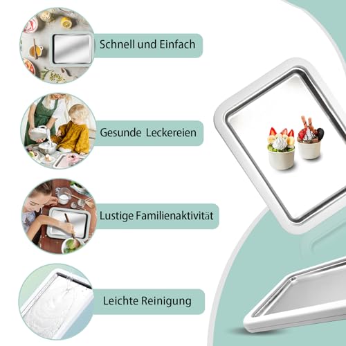 Materials in Lebensmittelqualität: Unsere Eisplatte besteht ganz Edelstahl 304 in Lebensmittelqualität und sorgt zugunsten gesundes und geruchloses Eis oder gefrorenen Joghurt, den Sie leistungsfähig verzehren können. Die Eisplatte lässt sich leicht reinigen, sodass Sie sich keine Sorgen über Wäsche erstellen