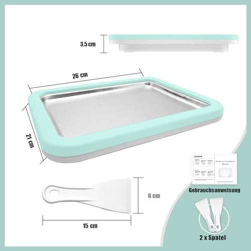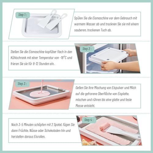 Paket: Das Paket enthält 1 x Eisplatte, 2 x Spatel und eine Gebrauchsanweisung. Die beste Zeit, die Eisplatte zu verwenden, ist innerhalb von 30 Minuten nach dem Herausnehmen ganz dem Gefrierschrank. Befolgen Sie einfach die Anweisungen und frieren Sie die Eisplatte im Voraus ein