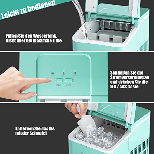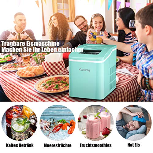 COSTWAY Eiswürfelmaschine Ice Maker 12KG/24H, Eismaschine Eiswürfelbereiter inkl. Eiswürfelschaufel / 9 Eiswürfel in 8 min / 1,6L Wassertank / 120W / 31x22x30cm (Grün)