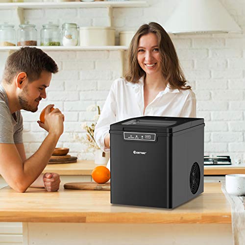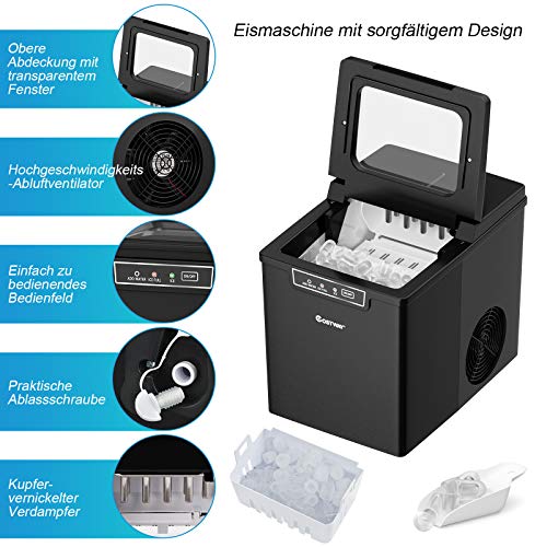 COSTWAY 1,85L Eiswürfelmaschine 12kg/24H, Ice Maker 9 Eiswürfel in 8 min, Eismaschine Eiswürfelbereiter inkl. Eiswürfelschaufel 35x25x29,5cm Schwarz