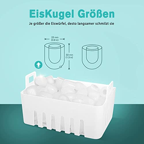 GROSSE EISWÜRFELGRÖSSE: Es produziert kugelförmige Eiswürfel und ist größer in der Größe (0,9 in x 1,3 in). Je größer das Eis, desto langsamer schmilzt es.