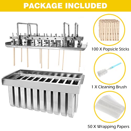 【Größe und enthalten】 Die Größe der Edelstahl-Eisformmaschine beträgt 35 x 15,5 x 13 cm; einzelne Eisbecher-Oberseite: 5 x 2,2 x 11,5 cm. 1 x Eiscreme-Formel (1 x Reinigungsbürste + 100 x wiederverwendbare Bambusstäbe + 5 x wiederverwendbare Bambusstäbchen. 0 x Plastikbeutel).