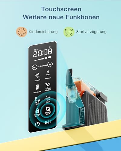 Revolutionäres LED-Touchscreen & 24-Stunden-Timer: Gebühren Sie Ihre slushie maschine intuitiv über das berührungsempfindliche LED-Display. Mit der 24-Stunden-Vorprogrammierung bereiten Sie Frozen Drinks bis zu einem Tag im Voraus zu perfekt für Veranstaltungen oder entspannte Abende