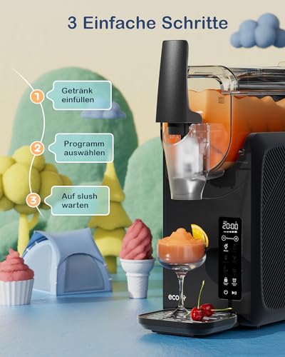 ecozy Slush Maschine, 24h-Timer, Selbstreinigung, Kindersicherung, 5 Programme, Slushie, Cocktail, Milchshake, Frappé, Wein, LED-Touchscreen, 2L Slushie Maschine, Kein Eis erforderlich