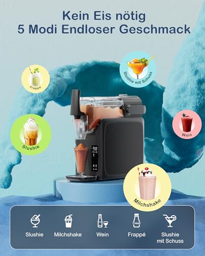 Keine Eiswürfel Nötig & 5 Intelligente Voreinstellungsmodi: Die Ecozy Slush Maschine kühlt Saft, Kaffee oder Cocktails sofort, ganz ohne Eis und Verdünnung. Genießen Sie in wenigen Minuten cremige, vollmundige Frozen Drinks. Mühelos, sauber und perfekt für jedes Zuhause. Mit 5 voreingestellten Modi Slush, Frappé, Milchshake, Spiked Slush und Wein. Passen Sie die Konsistenz je nach Stimmung von dickem Slush bis zu einer leichten, trinkbaren Konsistenz an. Perfekt für Partys, Camping, Tailgating und Grillabende