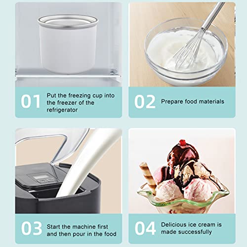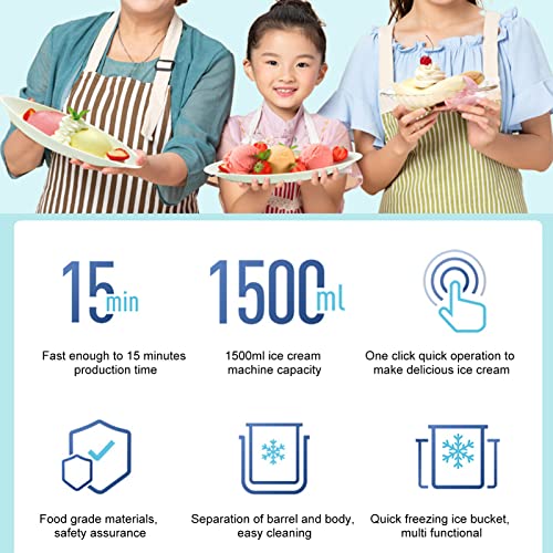 1500 ml Kapazität: Die Kapazität dieser Haushalts-Eismaschine beträgt bis zu 1500 ml, sodass diese Eismaschine eine Familie zufrieden stellen kann, um das köstliche Eis zu genießen.