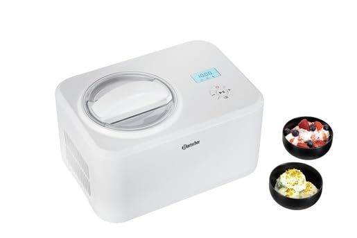 Eismaschine unter Zuhilfenahme von 1,5 l | Leistung: 0,12 kWSpannung: 230 V Frequenz: 50 Hz Angleichung: Elektronik / Beschlagnagel. Fassungsvermögen: 1,5 l. Kühlmittel: Turbo: R600a / 0,023 kg. Digitalanzeige: Ja. Ein-/Ausschalter: ja. Beize: Weiß. Entsprechend an Stelle: halbkonfektionierte Desserts. Gelees, Joghurt Eiscreme, Sorbets, Eis Gefrierbereich solange bis: ca. -25°Kohlenstoff Eisproduktion: ca. 30 solange bis 60 Minuten. Eigenschaften des Eisbehälters: Material: Edelstahl. Abnehmbar. Lieferumfang: 1 Eisdosierer, 1 Messbecher. Material: Kunststoff. Maße: L 380 x T 270 x H 245 mm. Ballast: 8,9 kg.