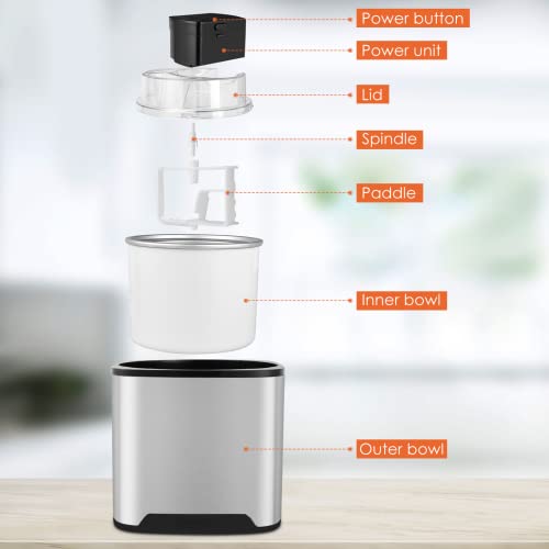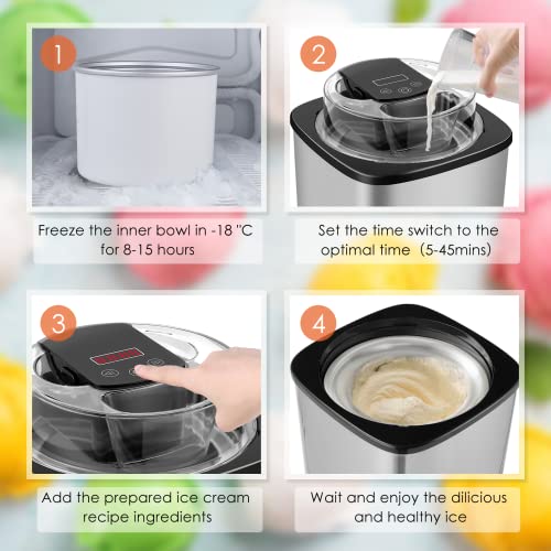 Langlebig und energiesparend: Der Innentank besteht aus Materialien mit Lebensmittelkontakt, sodass Sie köstliche Speisen unbesorgt genießen können. Wir brauchen hinwieder 15-45 Minuten, um die Eis zu machen.