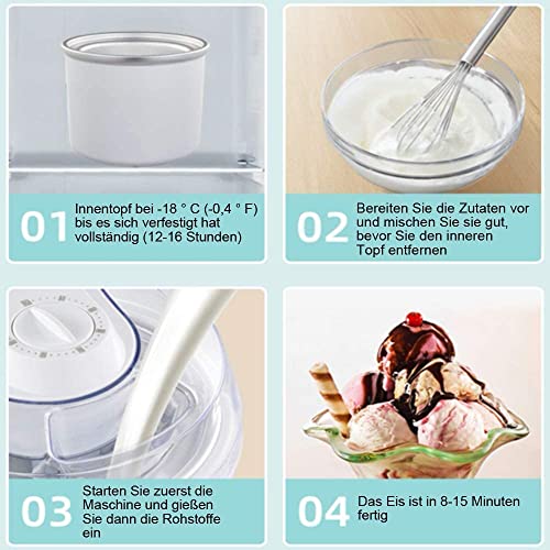 【Automatische Eismaschine】 Automatischer gefrorener Joghurt, Sorbet und Eis. Das automatische Mischpaddel wird mit einer idealen Geschwindigkeit gerührt, um sicherzustellen, dass die Mischung gleichmäßig gemischt wird. Bieten Sie Ihrer Familie in 20-25 Minuten köstliche hausgemachte Eiscreme.
