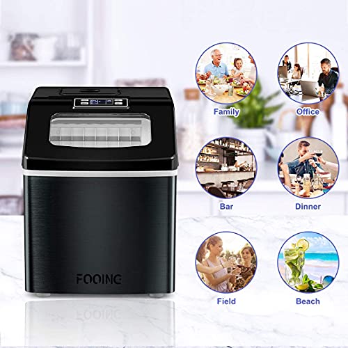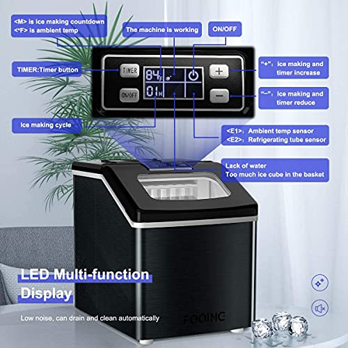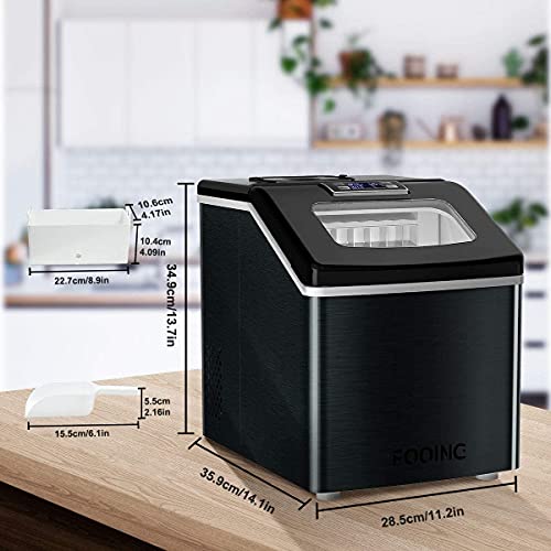 Eismaschine Fooing Eiswürfelmaschine 18KG / 24H Cube Ice Selbstreinigende Eismaschine mit Eisschaufel und Korb LED…