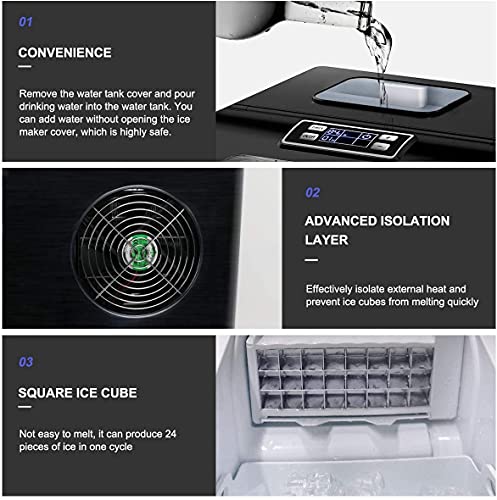 【24 Eiswürfel in 15 Minuten und 40 Pfund sämtliche 24 Stunden】 Unsere tragbare Eismaschine arbeitet schnell und stellt sämtliche 12 bis 18 Minuten knusprige, kaubare, quadratische Eiswürfel her – und bis zu 18kg Eis in 24 Stunden. Der abnehmbare Eiskorb speichert bis zu 2,4 Pfund Eis jeden Augenblick und stellt stabil, dass Sie Eis bereit haben, wann immer Sie es brauchen.