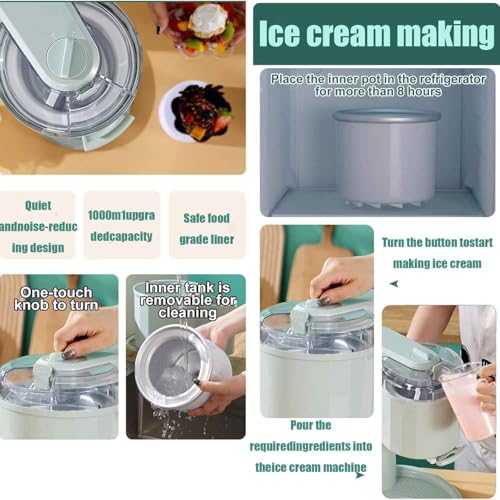 Eismaschine for den Haushalt, 1 l, automatische Softeismaschine mit herausnehmbarem und waschbarem Innenteil, Mini-Frozen-Joghurt-Frucht-Softeismaschine, for Frozen Yogurt, Sorbet, Gelato, Getränke