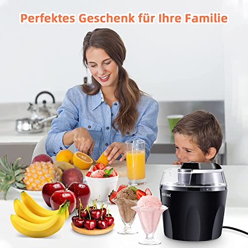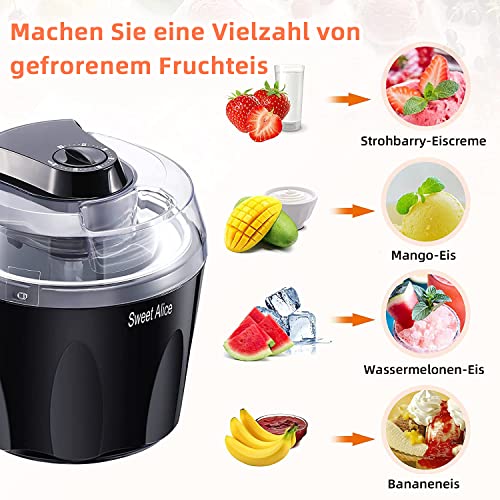 Eismaschine,Sweet Alice 1,5L Elektrische Speiseeisbereiter Zuhause Ice Cream Maker Frozen Yogurt Sorbet mit Leise…